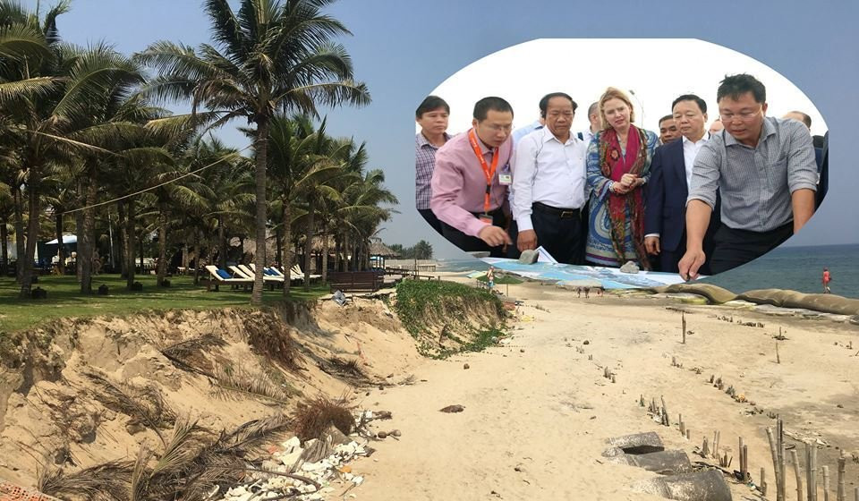 Cùng tham gia đoàn thực tế với Bộ trưởng Tài nguyên & Môi trường Trần Hồng Hà và bà Cornelia Van Nieuwenhuizen còn có đại diện lãnh đạo tỉnh Quảng Nam cùng hàng chục chuyên gia dày dạn kinh nghiệm trong việc chống xói lở đến từ Hà Lan.