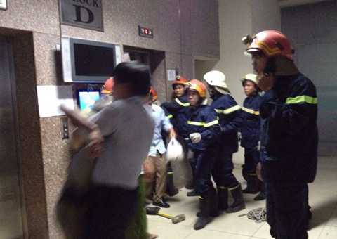 Nhiều người bên trong vì sợ hãi cộng với ngạt thở nên hoảng loạn kêu cứu. Nghe tiếng kêu, nhiều thanh niên và bảo vệ chung cư chạy tới hỗ trợ tách đôi cửa ra nhưng không được, phải trình báo cơ quan chức năng.