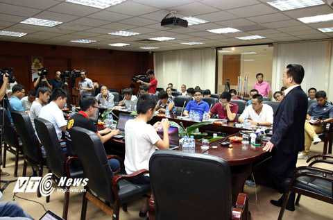 | Đông đảo phóng viên tham dự buổi gặp gỡ của bầu Hiển quanh sự kiện Manchester City sang Việt Nam (Ảnh: Quang Minh) |