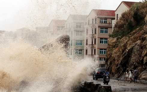 | Sóng lớn do ảnh hưởng của gió bão gần Wenling, tỉnh Chiết Giang |