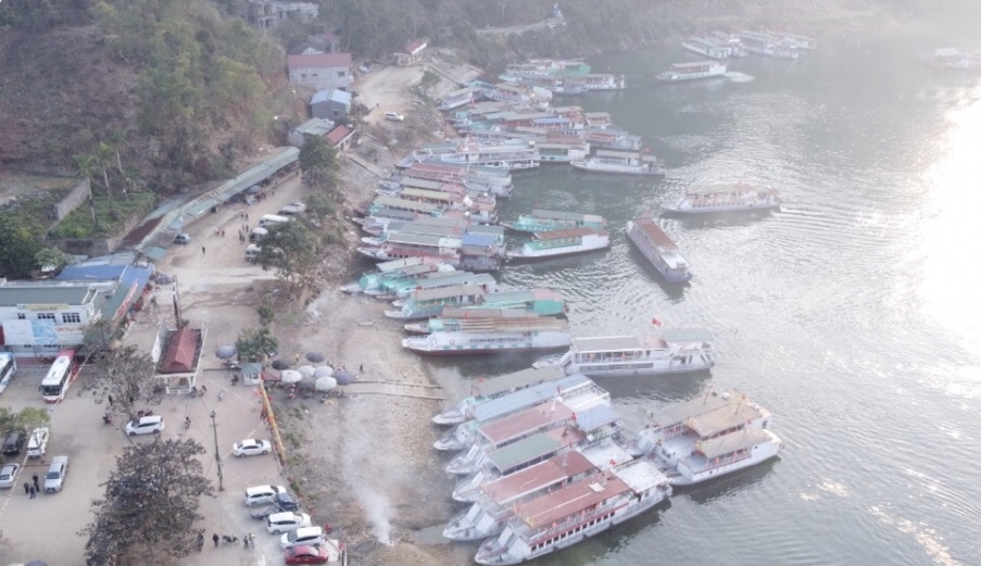Ghi nhận thực tế của phóng viên VOV.VN tại bến thuyền Tiến Anh (xã Thung Nai) cho thấy, khu vực bến này có khá đông khách du lịch đến và sử dụng dịch vụ tàu chở khách. Tuy nhiên, khác với cảnh tấp nập tàu thuyền như trước, bến Tiến Anh chỉ còn 17 tàu được phép hoạt động.