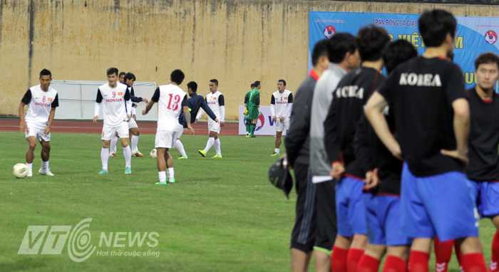 Tuyển sinh viên Hàn Quốc trên sân tập chiều 1/3 (Ảnh: Hà Thành)