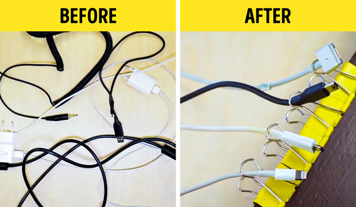 5. Sử dụng lõi giấy vệ sinh để phân loại các loại dây cáp trong ngăn tủ