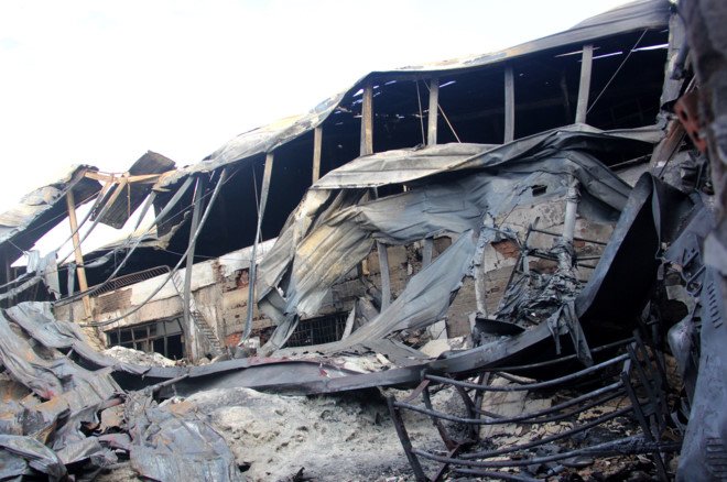 Nhà xưởng bị thiêu rụi, đổ sập mái.