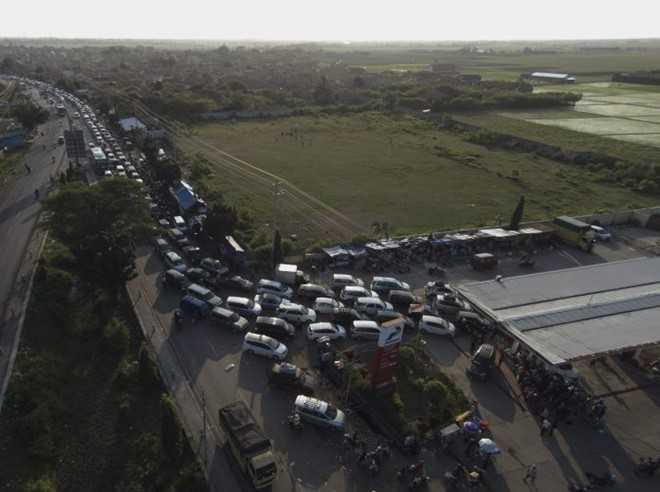 | Dòng xe nối đuôi trong vụ kẹt xe ở vùng Brebesl, Indonesia, suốt từ ngày 4 đến 5/7. Ảnh: Lensa Indonesia |