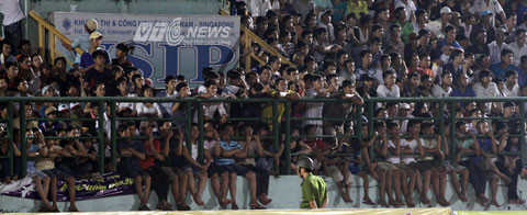 17h30: BTC giải đang tiến hành lễ bế mạc. Sân Gò Đậu không còn một chỗ trống. Có khoảng 25 nghìn khán giả đã đến sân. Cổ động viên ngồi chật kín sân Bình Dương (Ảnh: VSI)