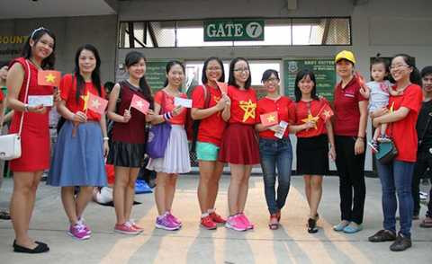 | CĐV Việt Nam qua cửa soát vé (Ảnh: TNO) |