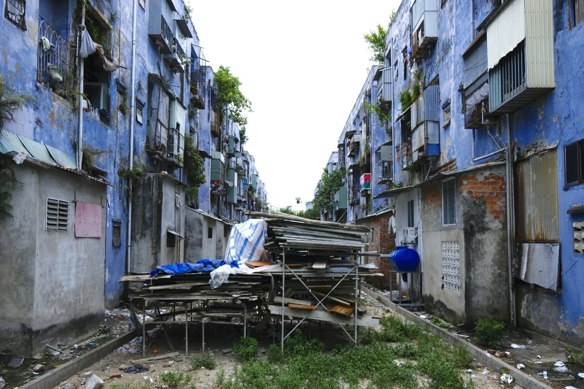 Khu chung cư Hòa Minh xuống cấp, nhếch nhác.
