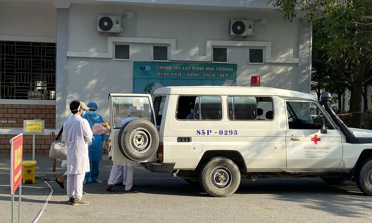 Hai bệnh nhân Covid-19 ở Ninh Thuận xuất viện sáng nay (1/4). (Ảnh: Quang Trung)