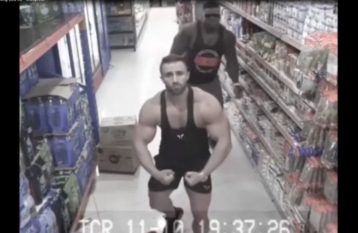 2 chàng cơ bắp cuồn cuộn tranh nhau 'tự sướng' trước camera siêu thị