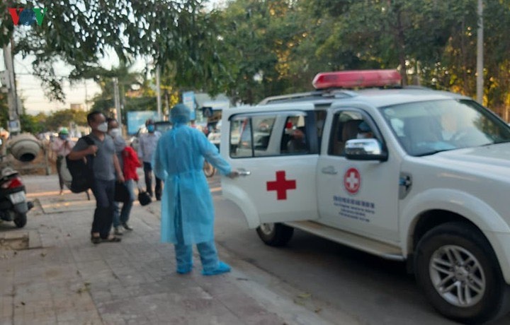 2 công dân Hàn Quốc được đưa tới khu cách ly (Ảnh: VOV)
