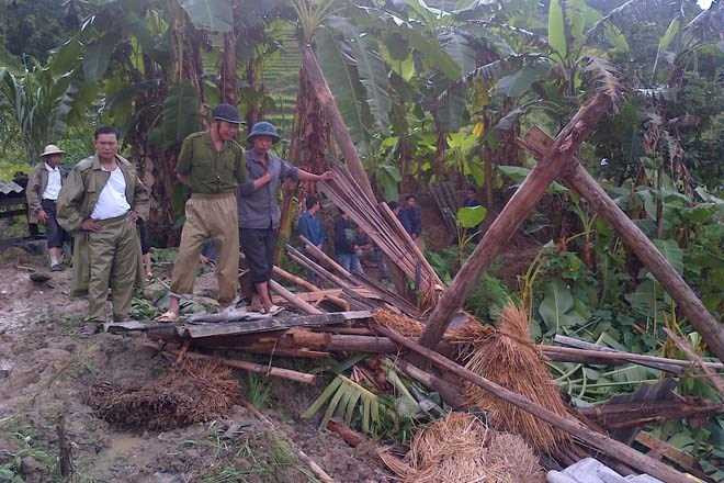 | Đất đá và nước quét qua nơi có ngôi nhà của ông Nùng Sào Diu. |