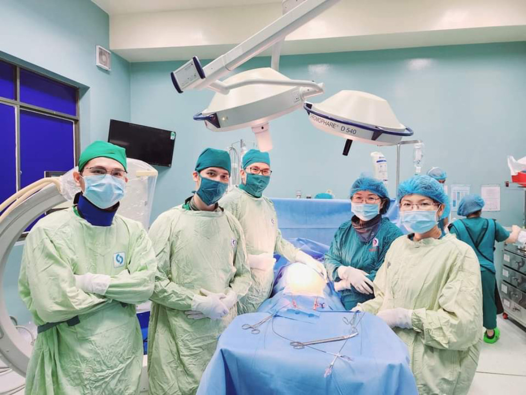 Cuộc phẫu thuật diễn ra vào tuần thứ 33,5 của thai kỳ. Ê-kíp phẫu thuật đã thành công trong việc mổ lấy thai kết hợp đặt bóng chèn động mạch chậu trong lúc mổ.
