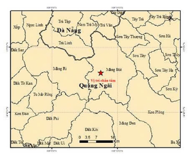 Trung tâm Báo tin động đất và Cảnh báo sóng thần, Viện Các khoa học Trái đất, vừa phát đi thông báo về 4 trận động đất xảy ra trong ngày 29/9 ở 2 xã Măng Bút, Măng Ri (tỉnh Quảng Ngãi).