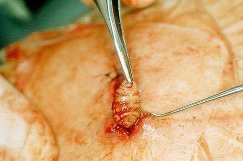 | Ấu trùng của ruồi trâu xâm nhập vào da người sống ký sinh thông qua vết thương do côn trùng đốt. Ảnh: Health News. |