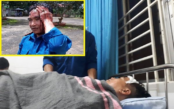 Nhân viên Công ty Cổ phần Tập đoàn Tân Mai bị chém trọng thương đang được điều trị tại bệnh viện.