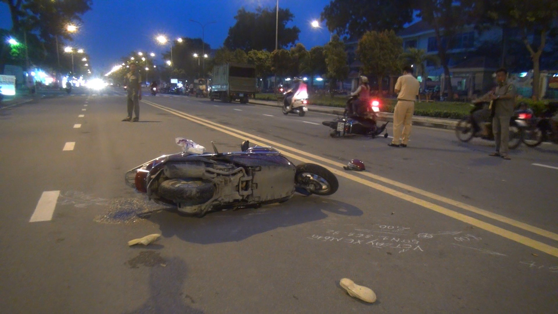 Khi vừa ra đến giao lộ này thì bị xảy ra va chạm với xe máy mang BKS: 83P3-569.10 do hai thanh niên chạy cắt ngang đường.