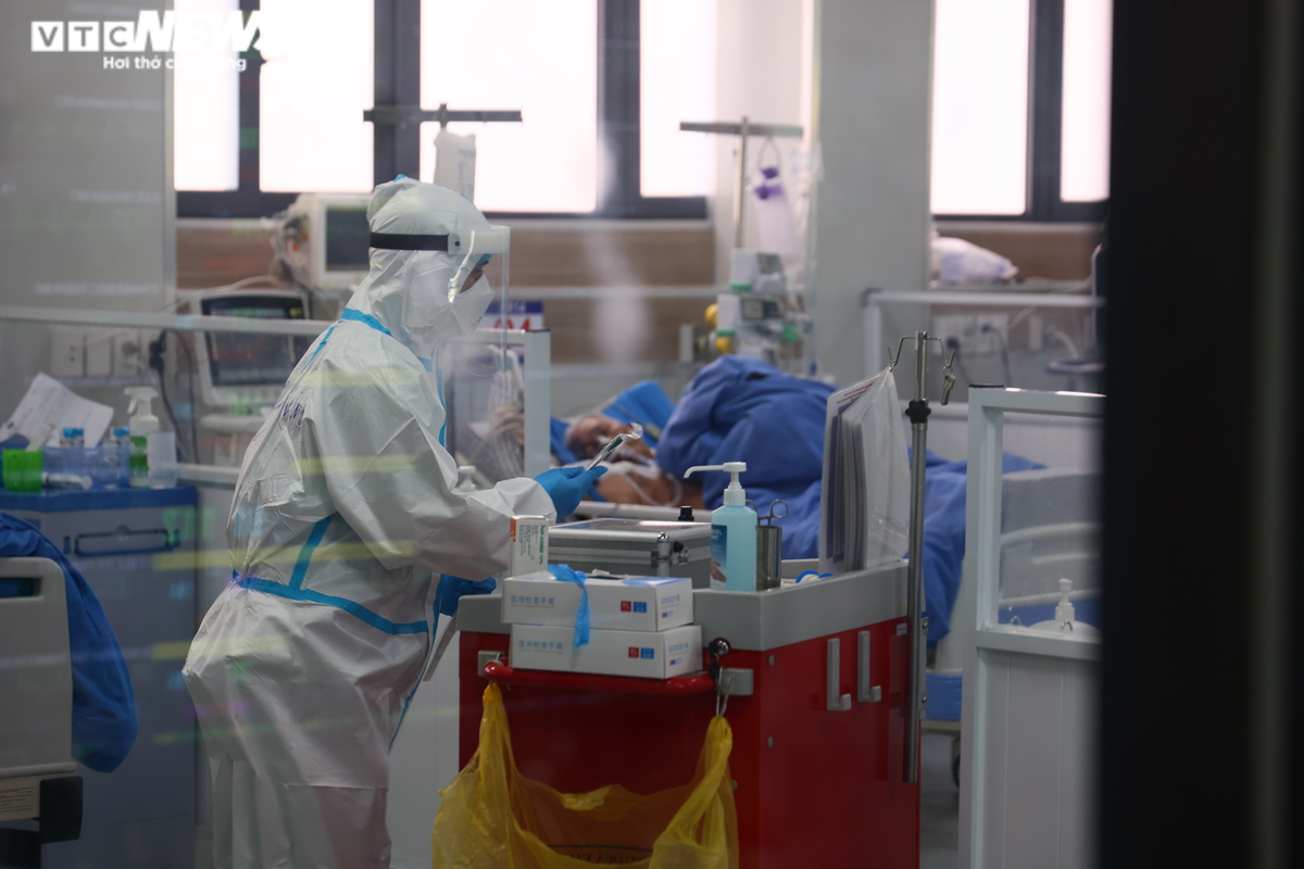 Nhân viên y tế chăm sóc cho bệnh nhân mắc COVID-19.