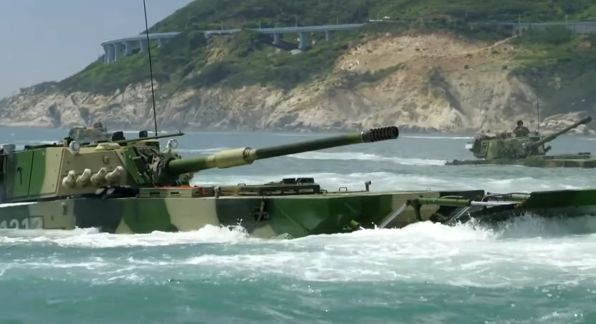 Trong cuộc tập trận gần đây nhất, quân đội Trung Quốc còn cho thấy họ sử dụng các máy bay không người lái, xe thiết giáp lội nước, pháo tự hành và cả pháo phản lực để đập tan hệ thống phòng thủ của mục tiêu giả định.