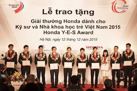 | 10 kỹ sư và nhà khoa học trẻ được nhận giảiHonda Y-E-S Award 2015 với tổng trị giá là 10 chiếc xe máy và 30.000 USD |