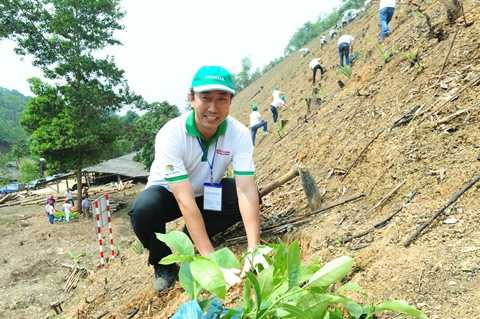 | Ông Minoru Kato - Tổng Giám đốc Honda Việt Nam tham gia trồng cây thuộc dự án trồng rừng sản xuất tại thị xã Bắc Kạn giai đoạn 2013-2023 |