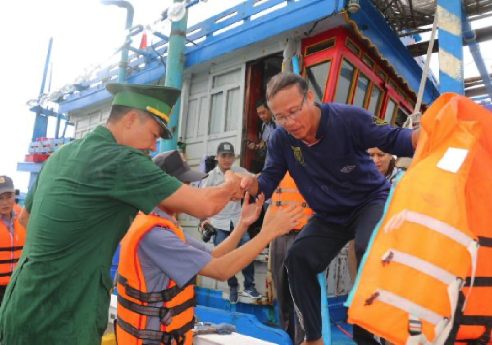 Ngày 3/11, tàu kiểm ngư đưa 6 ngư dân trên 2 tàu cá BĐ-97469-TS và BĐ-98658-TS của Bình Định - hai tàu cá gặp nạn vào ngày 27/10, về đến cảng Cam Ranh (tỉnh Khánh Hòa) an toàn.