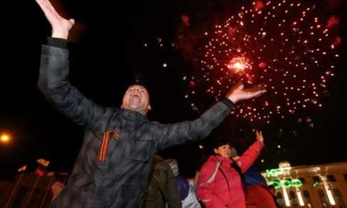 | Crưm bắn pháo hoa sau khi kết quả trưng cầu dân ý cho thấy đa số muốn sáp nhập Nga |