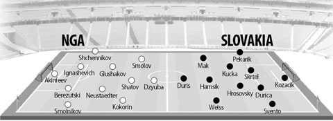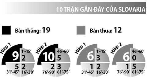 Trái với Nga, Slovakia lại có khởi đầu không thực sự suôn sẻ khi để thua 1-2 trước Xứ Wales. Đã vậy Slovakia còn rơi vào cảnh thiệt đơn thiệt kép khi có tới 5 cầu thủ phải nhận thẻ phạt vì lối chơi khá “rắn”. Đây rõ ràng là một gáo nước lạnh dội lên thầy trò HLV Jan Kozak.