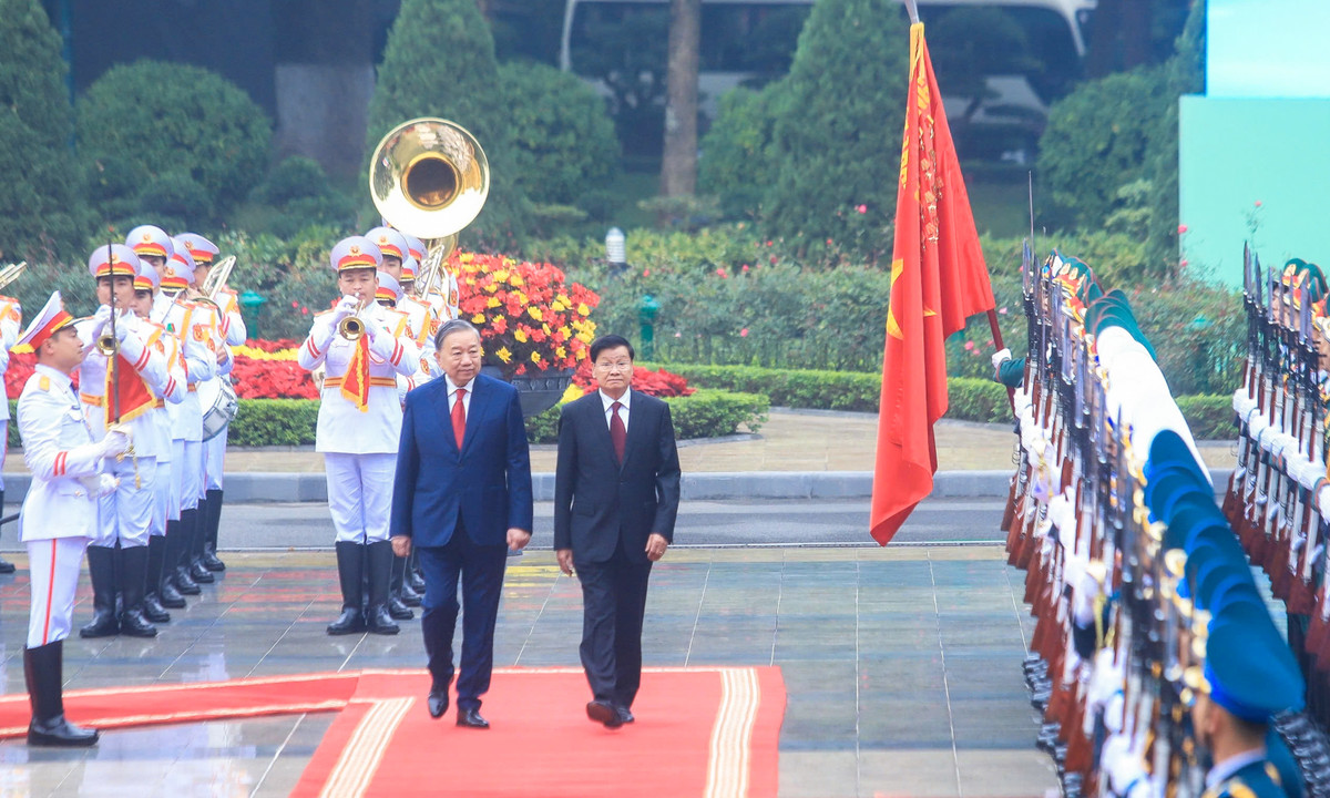 Sáng 26/1, Lễ đón chính thức Tổng Bí thư Ban Chấp hành Trung ương Đảng Nhân dân cách mạng Lào, Chủ tịch nước Cộng hòa Dân chủ Nhân dân Lào Thongloun Sisoulith cùng Phu nhân và Đoàn đại biểu cấp cao Đảng, Nhà nước Lào được tổ chức trọng thể tại Phủ Chủ tịch theo nghi thức cao nhất dành cho nguyên thủ quốc gia. Tổng Bí thư Tô Lâm và Phu nhân chủ trì Lễ đón.