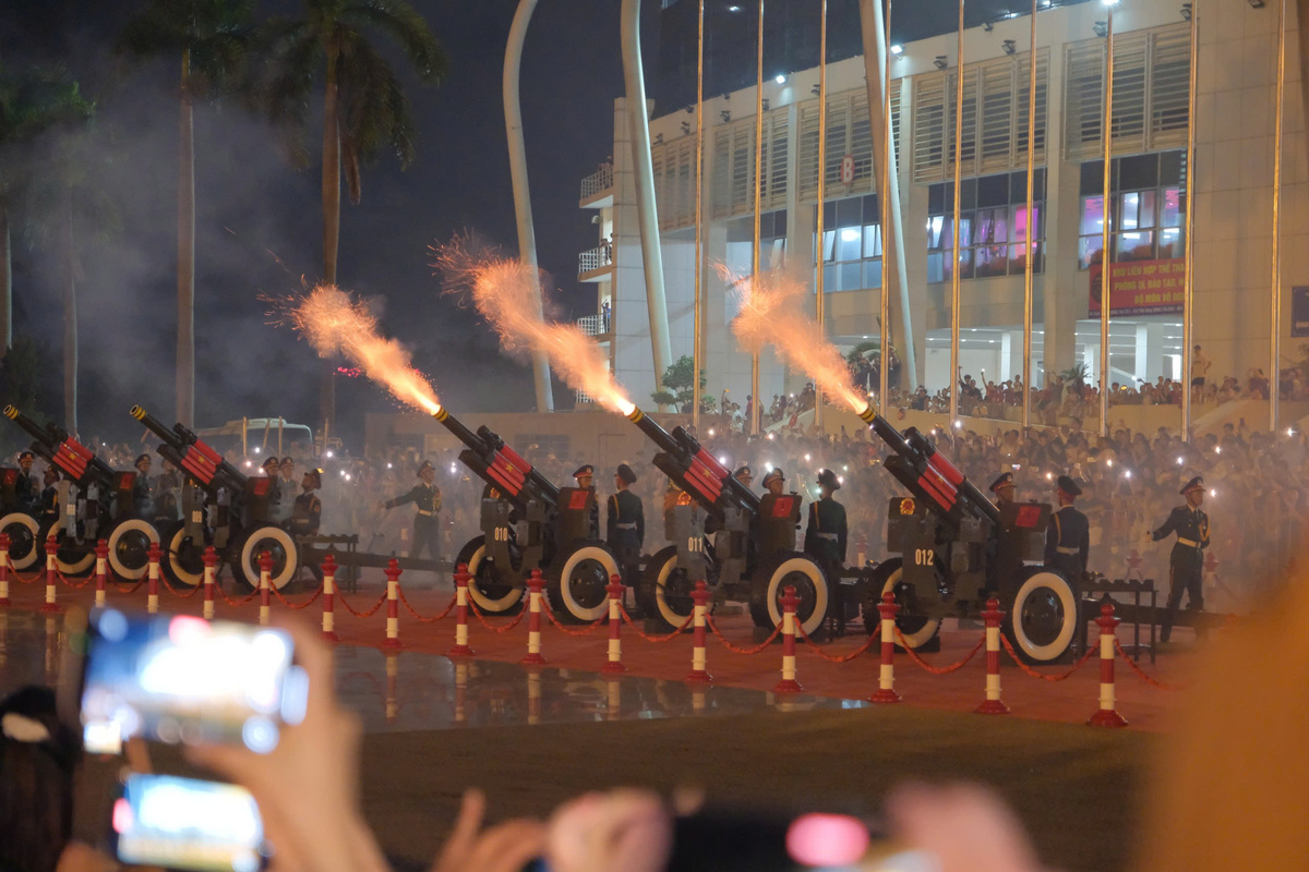 Tối 21/8, 21 loạt pháo lễ khai hỏa trên nền nhạc mở màn buổi tổng hợp luyện lần đầu của Lễ diễu binh diễu hành kỷ niệm 80 năm Cách mạng tháng Tám và Quốc khánh 2/9 tại sân vận động Mỹ Đình.