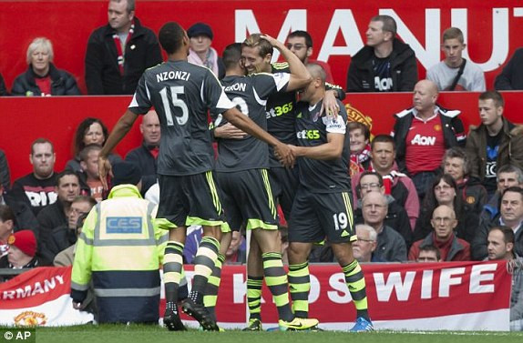 27' NGUY HIỂM.... Peter Crouch và Jonathan Walters thoải mái phối hợp trong khu vực 16m50, trước khi Walters tung cú sút trái phá về phía De Gea. Chỉ có sự xuất sắc của thủ thành người Tây Ban Nha, MU mới thoát hiểm. Thật khó tưởng tượng David Moyes đã làm gì với hàng thủ MU. Từ chỗ là một trong những hàng phòng ngự hàng đầu châu Âu, giờ đây bộ tứ vệ tại Old Trafford chẳng khác gì những cậu học trò mới vào nghề.