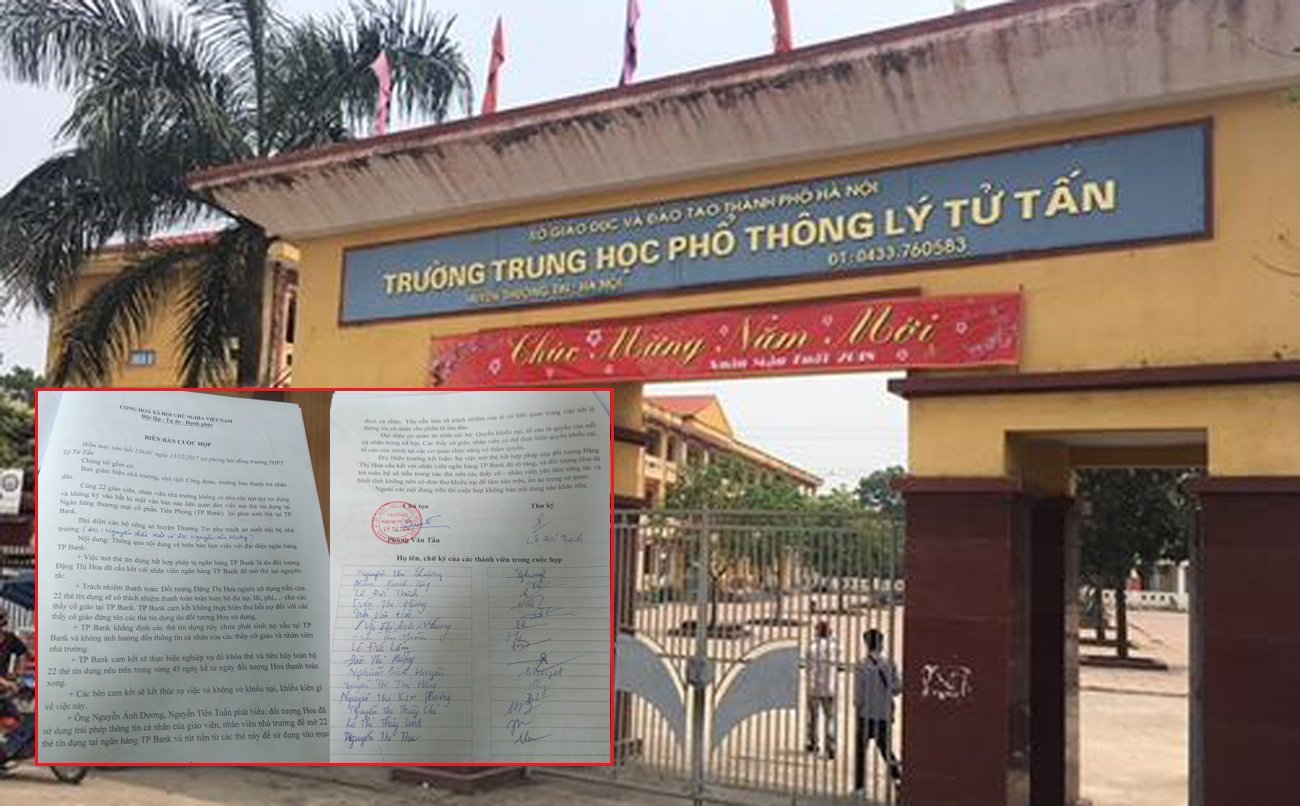 Buổi chiều 13/12, tại Trường THPT Lý Tử Tấn tiếp tục diễn ra buổi làm việc giữa Ban Giám hiệu Trường Lý Tử Tấn, 22 giáo viên, nhân viên nhà trường không có nhu cầu mở thẻ tín dụng và không ký bất cứ văn bản nào liên quan đến việc mở thẻ tín dụng, đại diện cán bộ công an huyện Thường Tín, phụ trách an ninh nội bộ nhà trường.