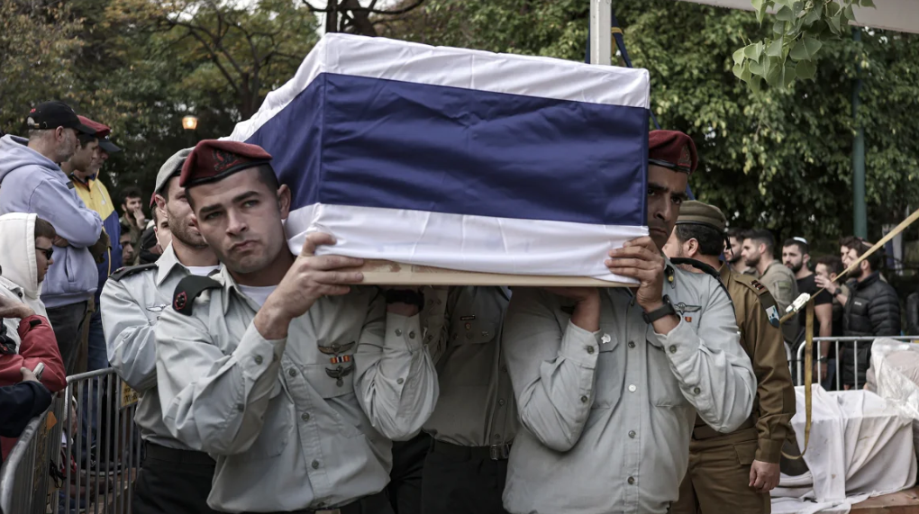Các binh sĩ Israel ôm quan tài của một trong những người lính thiệt mạng.