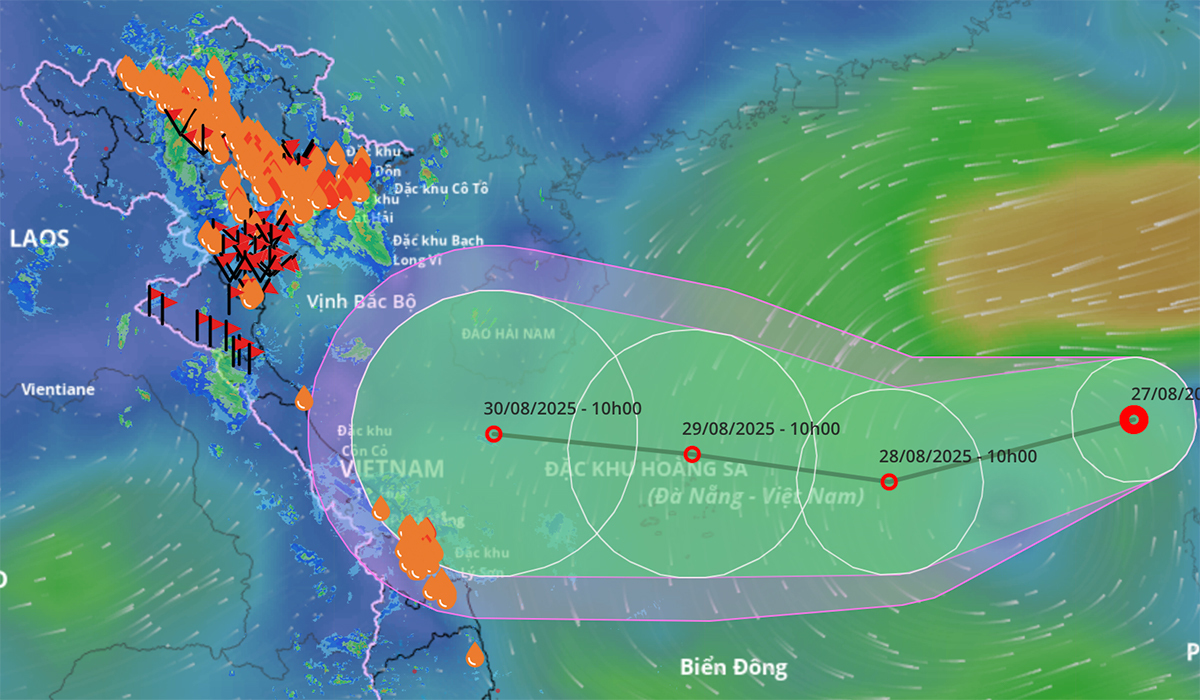 Khoảng 10h ngày 29/8, áp thấp nhiệt đới trên khu vực biển đặc khu Hoàng Sa, di chuyển theo hướng Tây, tốc độ khoảng 15km/h. Sức gió mạnh nhất vùng gần tâm áp thấp mạnh cấp 7, giật cấp 9.