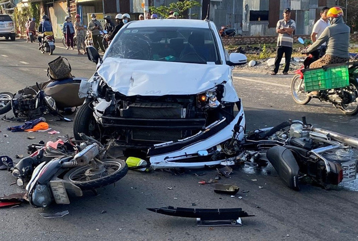 Tại hiện trường, ba chiếc xe nằm chắn hết hai làn đường, nhiều hàng hóa trên xe tràn ra, ô tô tải BKS 50H - 250.82 bị hư hỏng nặng, nhiều mảnh vỡ văng tung tóe. Giao thông ùn ứ kéo dài khoảng 10km.