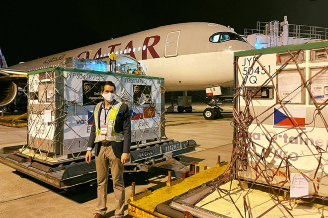 Lô vaccine COVID-19 Cộng hòa Séc viện trợ cho Việt Nam về đến Hà Nội. (Ảnh: Đại sứ quán CH Séc tại Việt Nam).