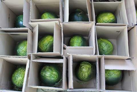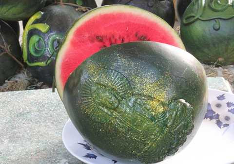 | Việc đắp phù điêu không ảnh hưởng đến chất lượng bên trong, thời gian bảo quản giống như dưa bình thường. Ảnh: Zen Nguyễn |