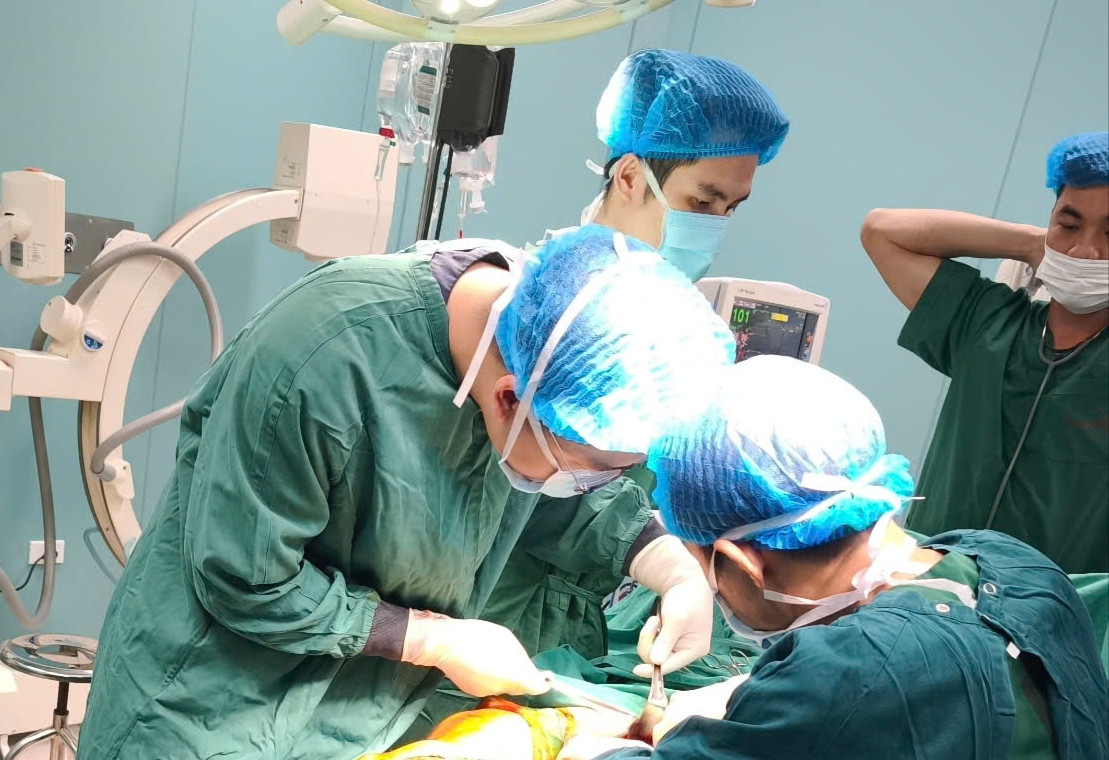Bệnh nhân được chuyển thẳng vào phòng mổ để nối động mạch khoeo, xử lý phần mô dập nát và cố định xương đùi. Do đứt động mạch khoeo chân phải, gây chảy máu ồ ạt, ngay từ khi cấp cứu đến lúc mổ, bệnh nhân được truyền tổng cộng 8,2 lít máu. Sau ca phẫu thuật, bệnh nhân được chuyển lên Trung tâm Hồi sức tích cực để theo dõi sát.