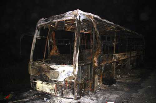 Lúc này tại hiện trường chỉ còn một nhân viên nhà xe được cắt cử ở lại, nhân viên này cho biết: Khoảng 20h (30/11), đang lưu thông hướng Gia Lai- Đắk Lắk thì phát hiện lửa và mùi khét lẹt từ dưới xe bốc lên. Lúc này trên xe có 28 hành khách rất nhốn nháo, nhân viên nhà xe đã mở cửa cho khách di chuyển đồ đạc và thoát khỏi vụ cháy an toàn.