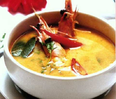 - Cho nước, riềng, sả, ớt, lá chanh vào nồi, đun sôi, tiếp theo cho tôm sú, nấm rơm, soup tom yam paste vào nồi nấu cho tôm chín, nêm đường, nước mắm và nước cốt chanh cho có vị chua ngọt vừa ăn. Múc súp tôm vào bát, cho rau mùi vào. Dùng nóng với cơm hay bún đều ngon.
