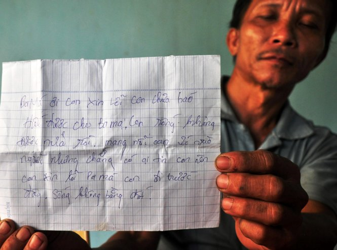 Thư tuyệt mệnh của một học sinh lớp 9 trước khi tự tử năm 2016.