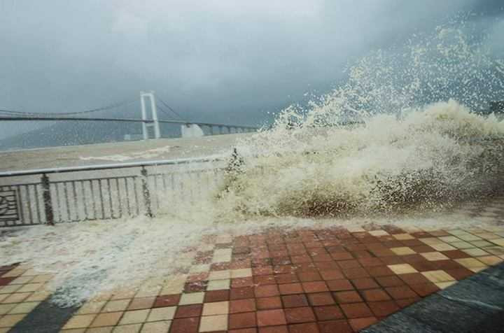 | Sóng đánh mạnh ở khu vực cầu Thuận Phước |