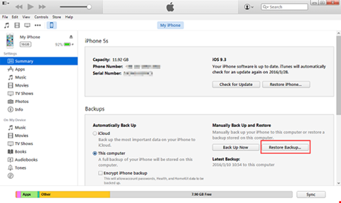 - Bước 3: Cuối cùng, nhấn OK và bấm vào nút Restore iPhone rồi tìm đến các bản sao lưu trước và thực hiện tương tự như trên.