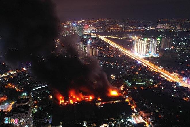 Nhận được tin báo, Công an TP Hà Nội huy động hơn 20 xe cứu hỏa cùng hàng trăm cán bộ chiến sĩ đến hiện trường để dập lửa. Theo ghi nhận của PV VTC News, lúc 19h30 khói lửa vẫn bốc nghi ngút kèm nhiều tiếng nổ lớn, ngọn lửa vẫn chưa thể khống chế. Nhiều xe chữa cháy đang lấy nước từ các trụ nước PCCC dọc đường Nguyễn Trãi để tiếp ứng.