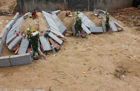 | Mộ ba mẹ con chị H. nằm cạnh nhau |