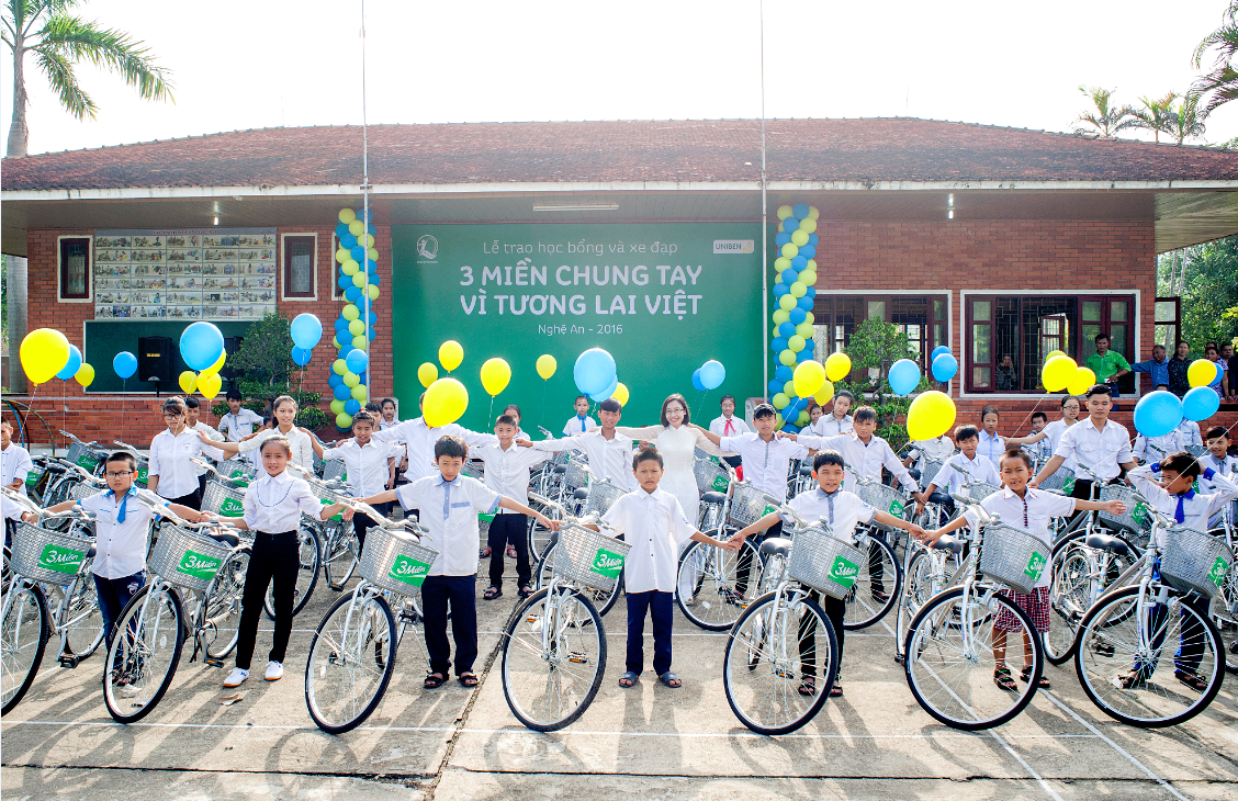 Việc trao tặng các sản phẩm nhằm cải thiện chất lượng bữa ăn cho học sinh các trường THCS DTNT và các cơ sở bảo trợ xã hội là một trong những hoạt động cộng đồng mà Công ty UNIBEN và nhãn hàng “3 Miền” đã liên tục thực hiện trong suốt những năm qua, với kinh phí lên đến hàng chục tỷ đồng. Chỉ riêng trong năm 2016, với chương trình “Chung Tay Vì Tương Lai Việt”, được phối hợp thực hiện tại Nghệ An, cùng Quỹ Bảo Trợ Trẻ Em Nghệ An, UNIBEN đã trao tặng hơn 100 xe đạp (trị giá gần 2.5 triệu/xe), 100 suất học bổng (trị giá 2 triệu đồng mỗi suất), hàng ngàn tập vở… Công ty còn tài trợ sản phẩm mì gói, hạt nêm, nước mắm 3 Miền giúp cải thiện chất lượng bữa ăn cho học sinh các trường học và hỗ trợ chi phí phẫu thuật cho trẻ em mắc bệnh tim bẩm sinh, với tổng kinh phí lên đến trên 3 tỷ đồng.