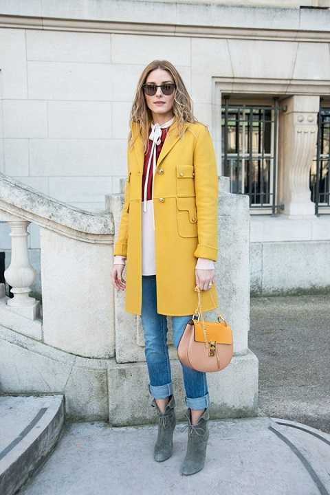Mỗi lần xuất hiện Olivia Palermo luôn mang đến những set đồ thú vị, mang đậm dấu ấn cá nhân. Một trong những set đồ đó là: Áo khoác dài Rockstud, Valentino; Bốt da lộn, Aquazzure + Olivia Palermo; Túi da crossbody, Chloe.