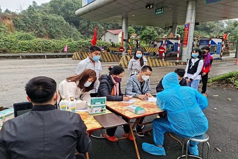 Người dân khai báo thông tin tại chốt kiểm dịch ở tỉnh Lào Cai.