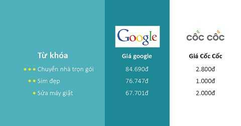 | So sánh giá quảng cáo từ khóa của 2 nhà cung cấp: Cốc Cốc và Google |
