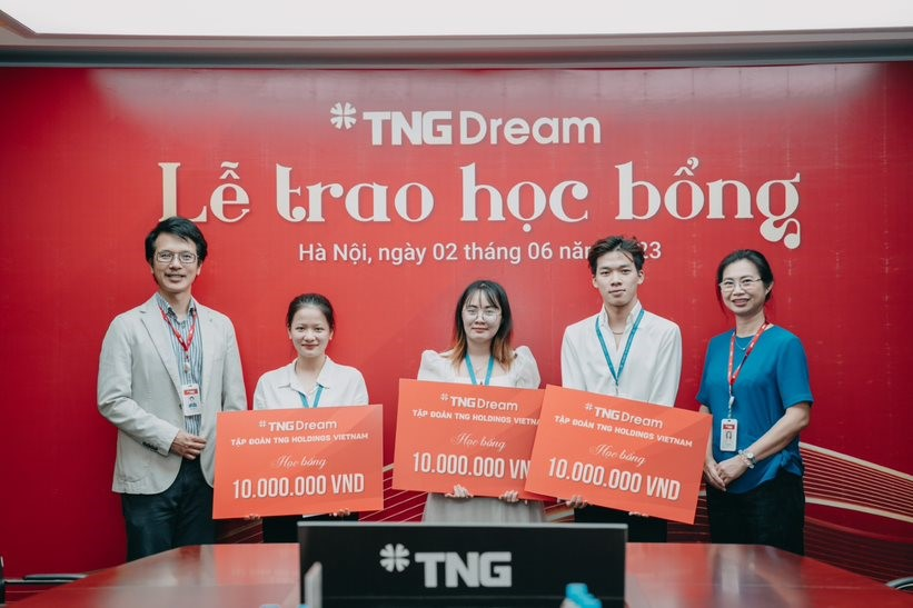 Ngày 2/6, lễ trao học bổng đã diễn ra trang trọng tại trụ sở Tập đoàn. Ba sinh viên xuất sắc nhận học bổng TNG Dream và trở thành thực tập sinh Business Analyst tại Công ty TNTech trực thuộc Tập đoàn TNG Holdings Vietnam gồm: Lê Thị Cẩm Ly; Lê Thu Trang và Nguyễn Minh Tú.